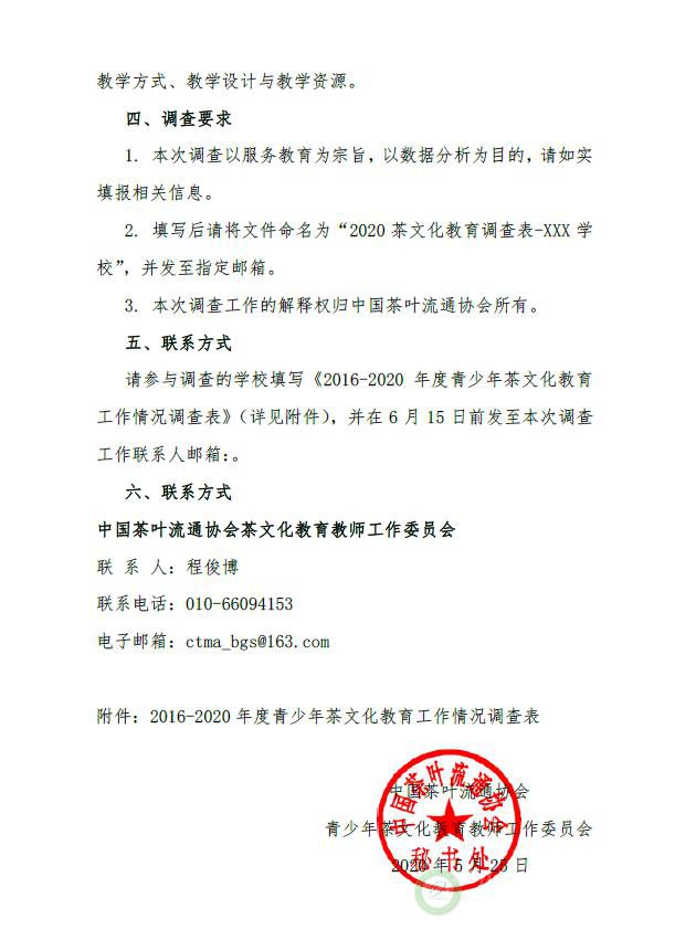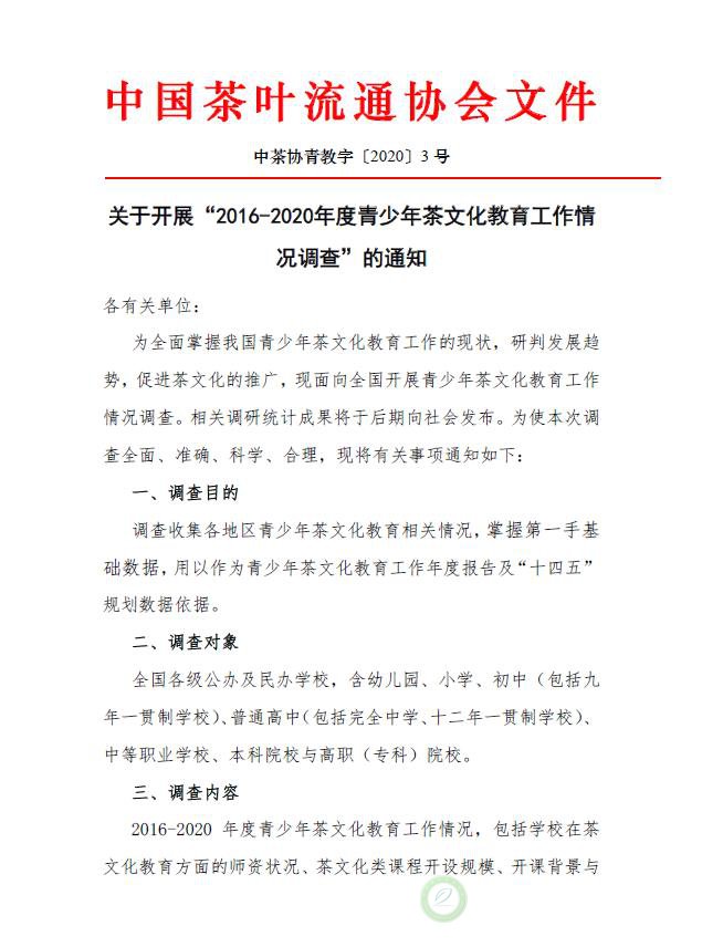 关于开展“2016-2020年度青少年茶文化教育工作情况调查”的通知