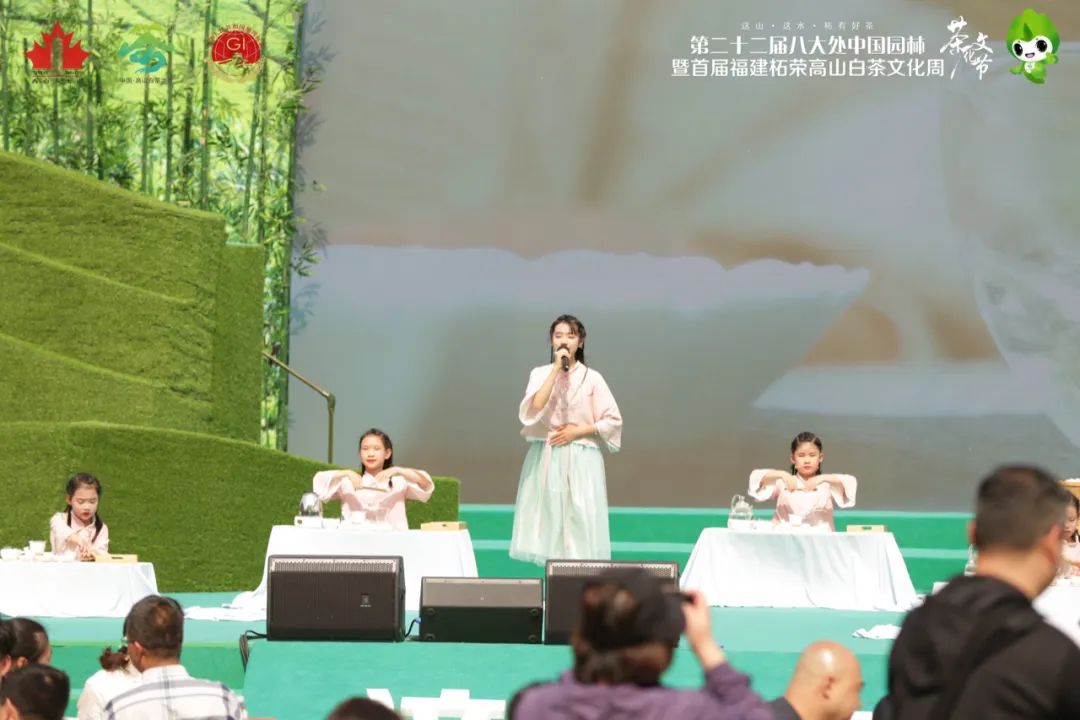 活动在开场舞蹈《柘有好茶》拉开序幕,来自柘荣的畲歌之王与北京著名歌手为观众献上歌曲《高山白茶敬北京》《亲朋好友》,演唱与采茶情景表演相得益彰,传递了京柘两地友谊与文化的交流共鉴;原创音乐舞蹈·诗《茶》则以此诗为创作蓝本,通过诗朗诵、舞蹈语言结合大屏互动,充分诠释了“茶”的文化力量等。