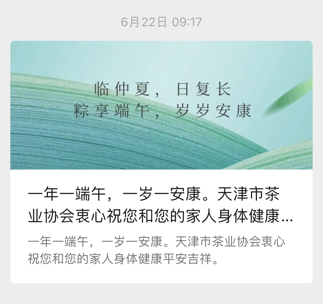 一年一端午,一岁一安康。天津市茶业协会衷心祝您和您的家人身体健康平安吉祥。