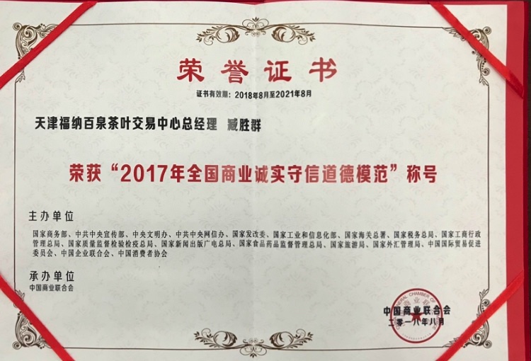 天津市茶业协会历年荣誉奖项